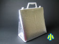 【手提げ保冷角底袋 (小) 】 /サイズ:外寸(幅)275×(マチ)160×(高)280/材質:アルミ蒸着/色:シルバー ハンドルの色:白/用途:保冷用/輸入品:中国/※ハンドル:白色・ストッパー付(嵌め合式)底台紙入・内テープなし